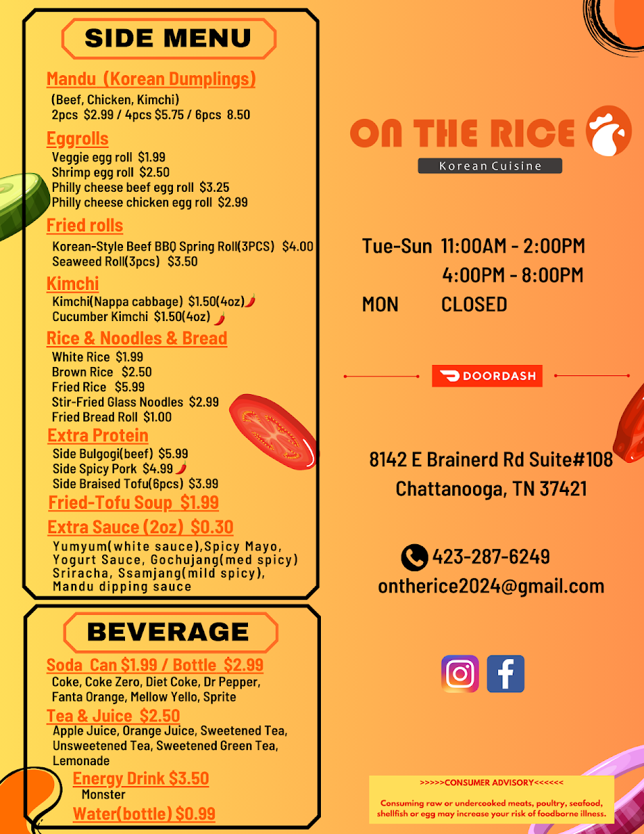 Welcome to On the Rice, where authentic Korean flavors meet a modern twist! Located in Chattanooga, TN, this restaurant elevates Korean cuisine with a vibrant menu that features dishes designed for both comfort and appeal.